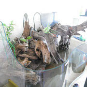 Beim Aufbau muss man sich überlegen wie die Wurzeln und Steine am besten gestellt werden um allfällige Grotten, Wasserfälle und Pflanzmöglichkeiten zu erhalten. Damit später kein Wasserschaden durch Glasbruch (umfallende Konstruktion) geschieht, muss gewährleistet sein, dass die Konstruktion im Aquarium stehen bleibt. Falls nötig, können die Wurzeln auch miteinander verschraubt werden. Hierfür werden Edelstahlschrauben benötigt. Falls eine eingeplante Wurzel zu lang sein sollte, kann diese natürlich auch mit einer Säge gekürzt werden.